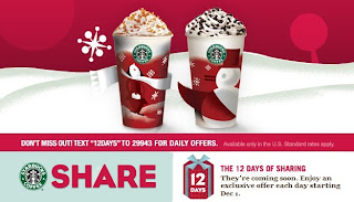 Starbucks Texts – Are you getting the Starbucks Texts?? If not, you are missing out on great Christmas deals. They send you a text each morning, for the special of the day!!