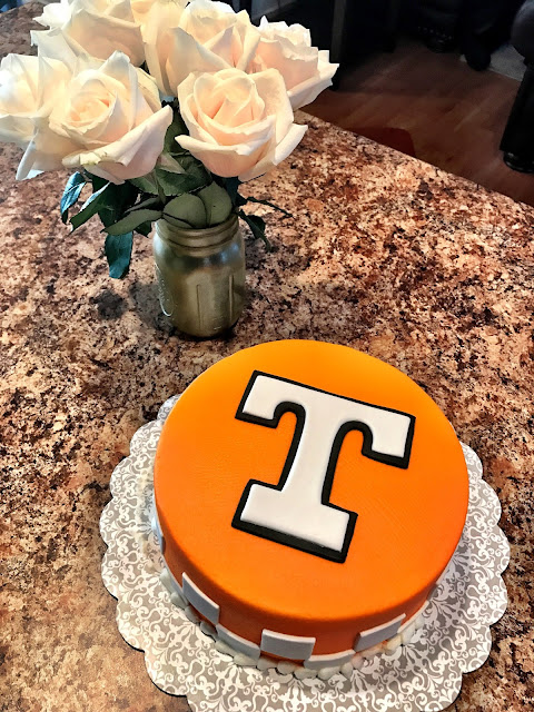 Last weekend, we planned to throw my mom a 70th Birthday Party; however, when we woke up Saturday morning we had 4" of snow and the roads were slick. So, we cancelled the "BIG" party, and threw a small family party at our house. This is the top tier of her cake, and it was sooo delicious.